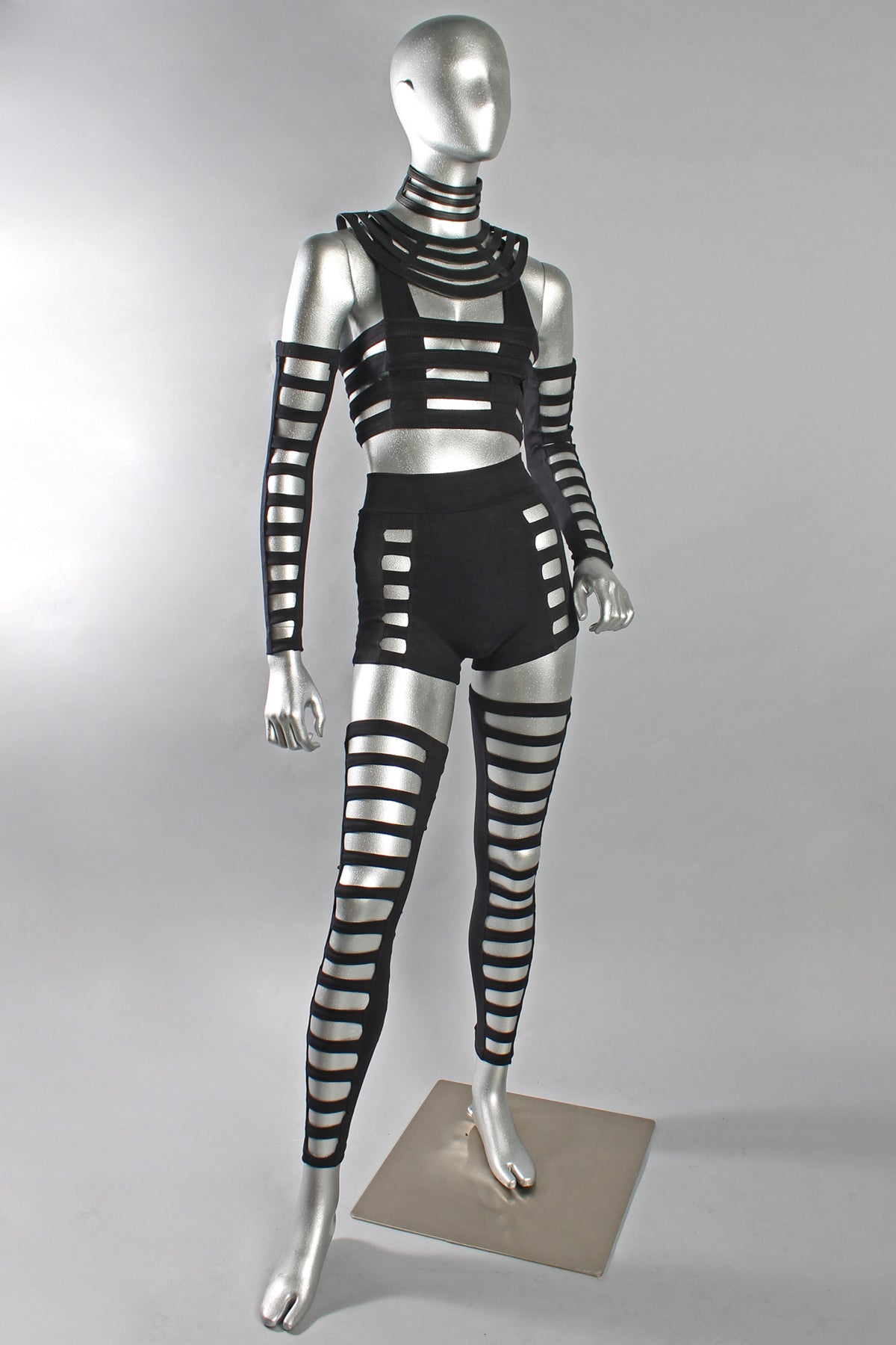 A study in structure and intention. The Cage Bra wraps the body in precisely placed straps, creating a bold silhouette that feels both supportive and expressive. Crafted from thick cotton stretch with each strap individually positioned and sewn, it offers confident coverage while remaining striking whether worn alone or layered.