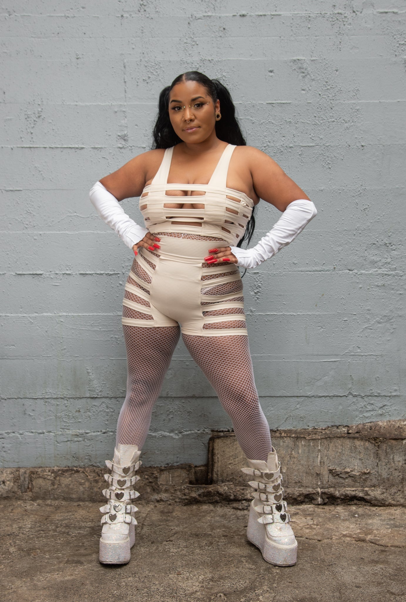 Structured, sculptural, and quietly commanding. The Deluxe Cage Bra in swim nylon brings elevated support with a striking strap architecture designed to frame the body while offering confident coverage. The soft cream tone feels clean and intentional — equally at home poolside, on the dance floor, or layered beneath a low neckline.