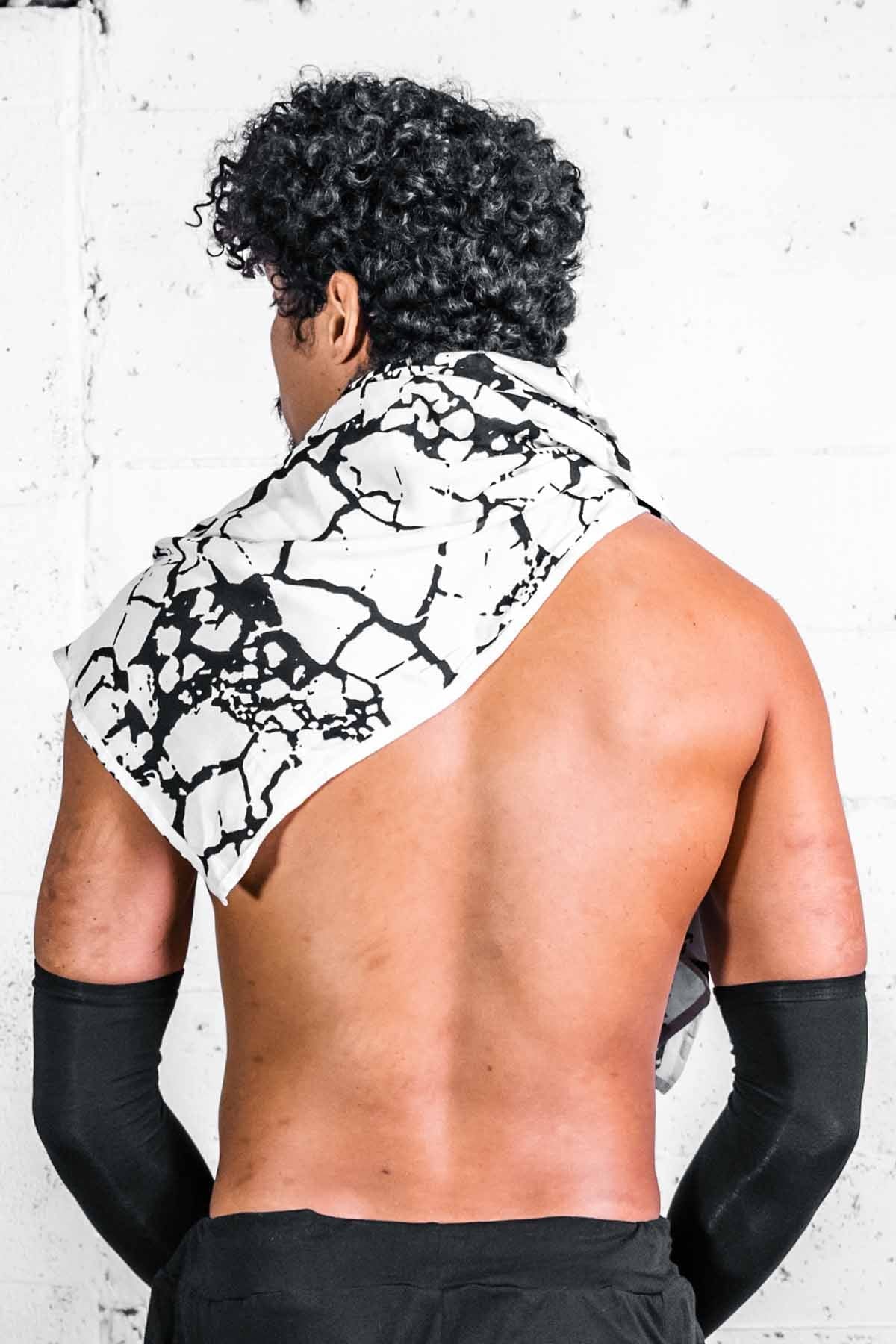 Dust, movement, and open horizons — translated into fabric. This oversized scarf features a subtle playa-inspired print with tire tread markings that feel both grounded and quietly graphic. Light and fluid, it layers effortlessly as a wrap, hood, or draped accent — an easy piece that carries a sense of journey wherever you wear it.