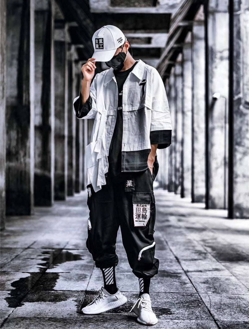 - Removable samurai dropdown back tabs with Japanese kanji design translating to "Heavy Urban Industries"